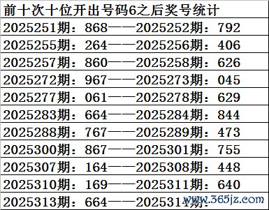 一、上期开奖:福利彩票3D第2025313期奖号为664。奇偶比为0:3,大小比为:2:1,奖号和值为16,奖号跨度为2。